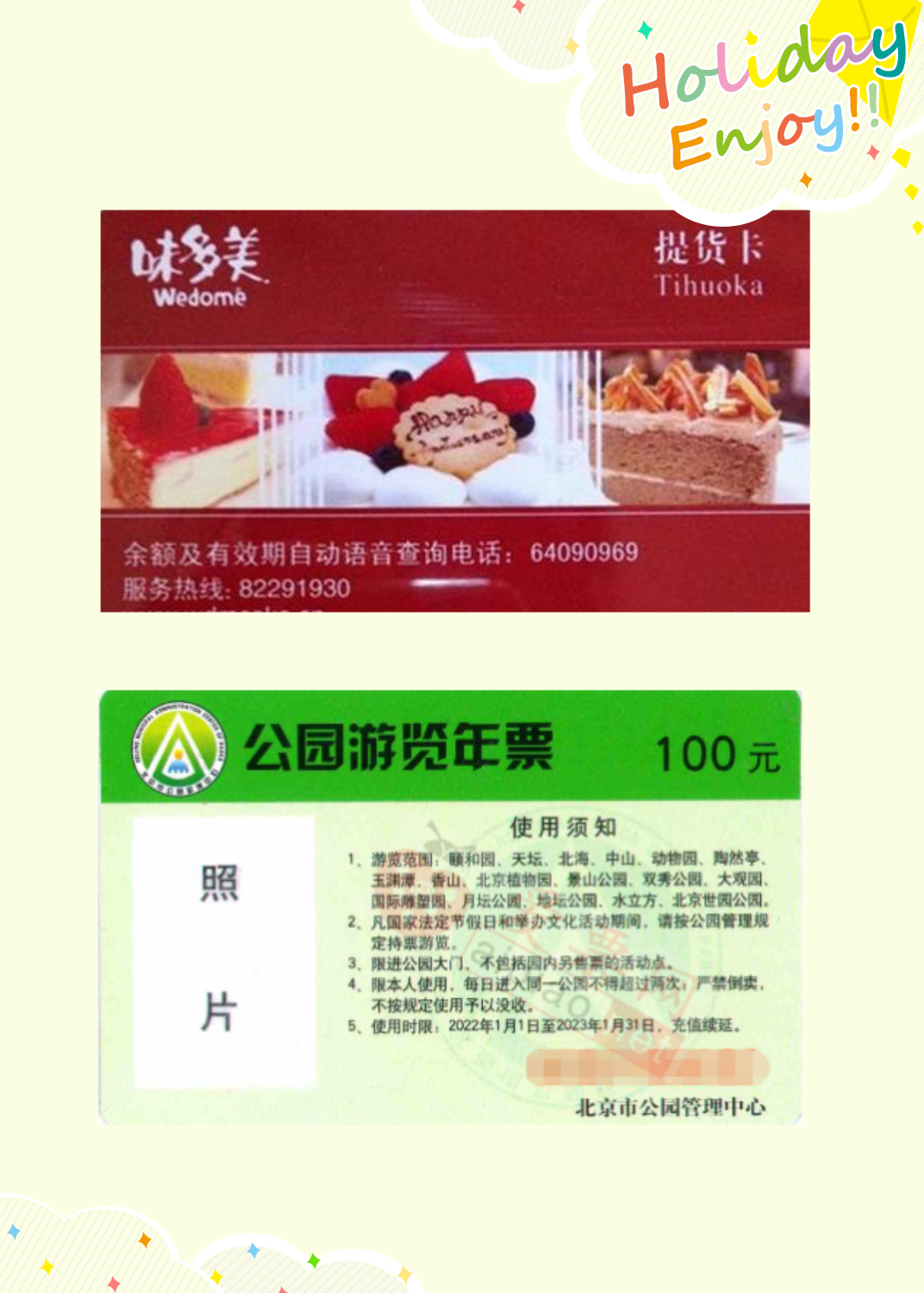 2019年疫情来临之前,开云官方网址工会每年都会为本院在职和离退休教职员工及家属组织春秋游活动,已经举办了十余年,深受老师们的好评。在舒适悠闲的郊区野外,外院大家庭相聚一起,轻松愉悦地交流感情,其乐融融,格外温馨。自疫情以来,我院工会坚决执行“少外出、不聚集”的防疫号召,最大限度地保护全院教职员工的健康和安全。学院工会连续两年将往年用于组织教职工春秋游的经费灵活处理,为老师们提供北京市公园游览年票或味多美生日蛋糕卡二选一的福利方案。以上两种福利金额大致相当,为100—103元人民币。北京市公园年票适用于含颐和园、天坛公园和北京世园公园等在内的共17家市属公园。喜欢游览公园的老师只需提交一张一寸照片或将往年的公园年票交给学院工会福利委员潘桂英老师即可,由潘老师前往公园为老师们统一办理后发放给大家。生日蛋糕卡一般则是为老师们办理门店较多、便于购买的味多美蛋糕卡。