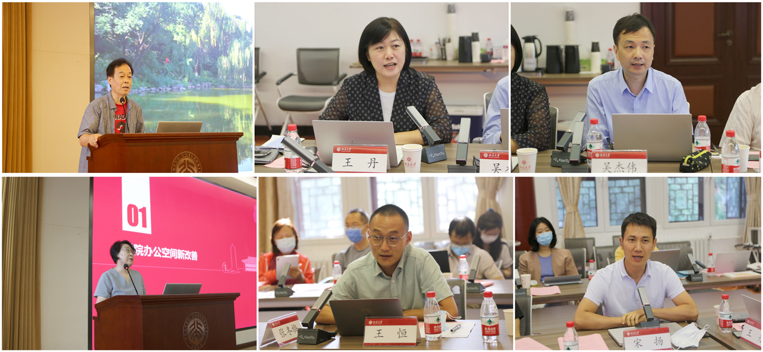 学院党政领导班子成员围绕各自分管领域,对前一阶段工作进行总结,对未来各项工作进行动员部署。副院长付志明介绍了本科生工作基本情况,希望各专业深入优化本科生培养模式,积极参与教材立项与教学改革,为国家培养急需人才。副院长王丹介绍了研究生工作基本情况,并对整合优化博士生培养方向、高质量完成招生、奖助工作,从严遴选、审核研究生导师提出要求。副院长吴杰伟总结了上半年学院有组织科研建设、科研项目申请立项以及一流学科建设情况,表示未来将继续深化有组织科研,争取产出更多体现整体学科实力的高质量成果。副院长张冬梅围绕学院行政工作整体情况作报告,并就在办公空间、秘书团队、工会建设以及离退休工作等方面的新举措、新规划进行介绍。党委副书记王恒指出学院坚持立德树人,在学生工作方面取得了良好的成绩,未来将积极拓展第二课堂,与教师队伍加强协同,共同探索疫情防控常态化下学生教育管理新模式。党委副书记宋扬介绍了学院外事工作,希望各专业能够持续加强优秀外籍教师的引进和培养,积极申报海外名家讲学等项目,支持学院乃至学校教学科研和国际化建设。
