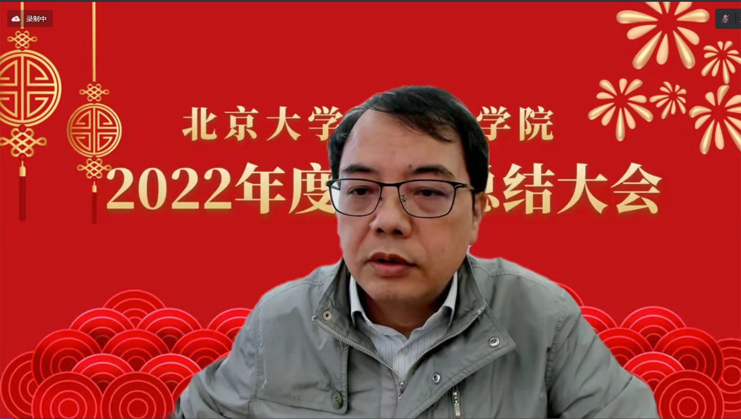 院长陈明对学院全年的工作进行了总结。2022年,学院师生团结一心、共克时艰,各项工作稳步推进,取得了优异的成绩。学院紧抓放权改革机遇,编制《外国语言文学学科放权改革方案》,明确了北大外语学科的阶段性建设目标。学院坚持党对人才工作的全面领导,深化教师人事制度改革,制定《开云官方网址人才发展战略》,系统开展引才、育才、选才工作,多措并举、强化引领。打造“院长茶座”“青年教师座谈会”“学科建设沙龙”等品牌活动,促进青年教师职业生涯发展。在教育部第五轮一级学科评估中,北大外语学科保持领先,翻译专业学位在全国专业学位水平评估中表现优异,彰显了学院的引领地位。申丹教授荣聘中国人力资源保障部批准聘任的国家文科一级教授,段晴教授领衔的“东方语言文化教师团队”入选教育部第二批全国高校黄大年式教师团队,赵振江教授荣膺中国翻译界最高荣誉“翻译文化终身成就奖”……无数荣誉的取得无不体现着学院教师深厚的积累与持续的爆发力,以及学院风清气正、勠力同心的学术生态。他希望新的一年,全院教师能够精诚合作、团结一心、各尽其能,共同谱写北大外语学科发展的新篇章。