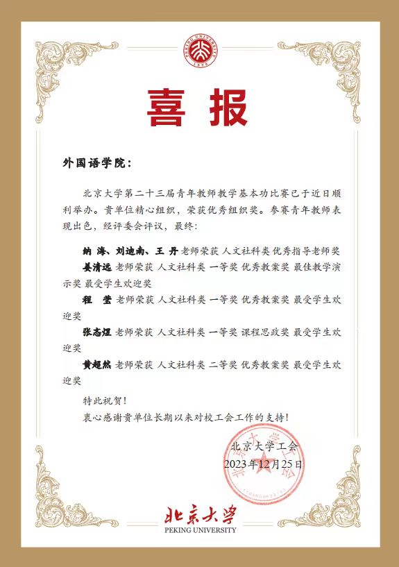 喜报:外院教师在第二十三届青年教师教学基本功比赛中取得佳绩