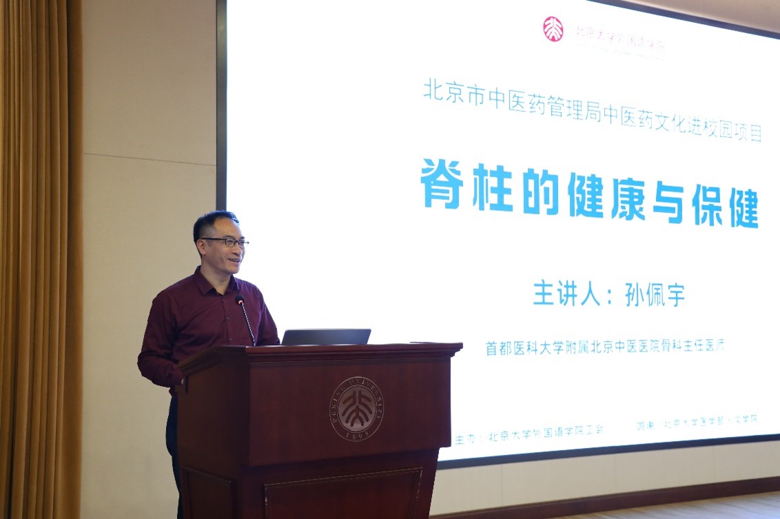 脊柱是人体的“顶梁柱”,是身体健康的根本。长时间伏案工作和学习,使教师和学生的颈椎、腰椎压力巨大。为了更好的保护脊柱,增强师生对脊柱健康的重视,作为“北京市中医院管理局中医药文化进校园”活动之一,11月20日开云官方网址工会特别邀请骨科专家孙佩宇老师为大家带来题为“脊柱的健康与保健”的专题讲座,吸引了部分外院师生及校内老师前来聆听。讲座由外院工会常务副主席倪丽慧老师主持。