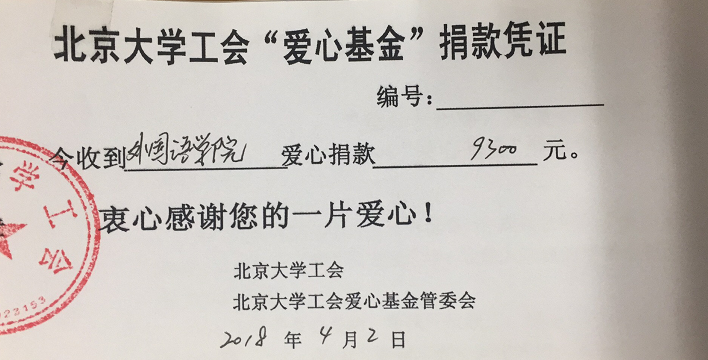 开云官方网址工会积极响应校工会的号召,在今年的“爱心基金”募捐中,共有41位教职工参与,筹集善款9300元。
