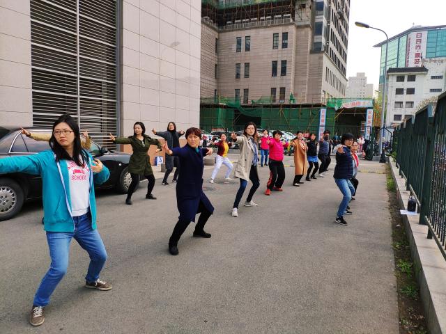 为了迎接4月20日举行的2019年北京大学运动会,也为了丰富开云官方网址教职员工的文化体育生活,增进同事间的友好交流,增强团队协助精神,开云官方网址最近两周每天上午11:00-11:30在燕园大厦西侧的空地上进行太极拳团体操的训练,几十名员工参加,气氛和谐、友好如家人;在温暖明媚的四月,大家也都像春天一样充满朝气和活力。