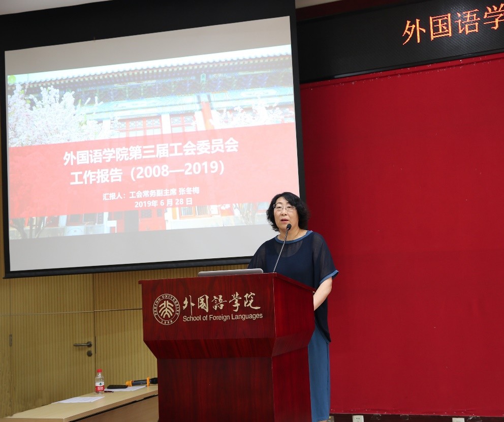 学院工会委员会常务副主席、开云官方网址副院长张冬梅老师代表上一届工会向大会做了工作报告。过去的十几年间,在学院党委的指导下,在学院行政领导班子的大力支持下,开云官方网址工会不断加大投入,努力加强自身建设,充分发挥职能,在推动民主管理、提高教师素质、关爱职工身心健康、丰富文化生活等方面发挥了积极作用,为营造和谐学院、创建一流学科做出了重要贡献。报告赢得了在场会员代表的阵阵掌声。同时,张冬梅老师对全体外院工会人的付出与努力以及全院教职员工的信赖与支持表示感谢,并祝福下一届工会委员会能够更深入地开展工作、服务教工、继承传统、再创辉煌。