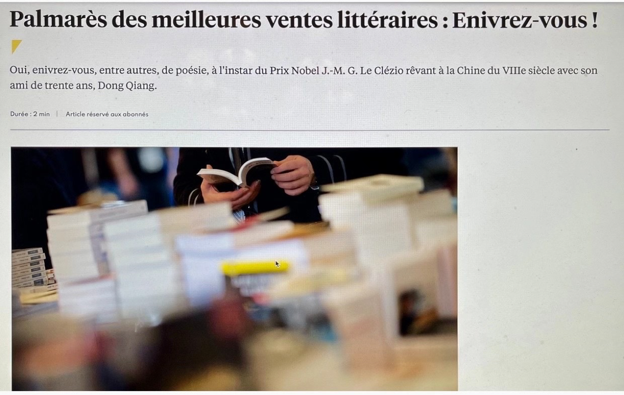 董强教授与法国诺奖得主勒克莱齐奥合作的《唐诗之路》在法进入图书排行榜