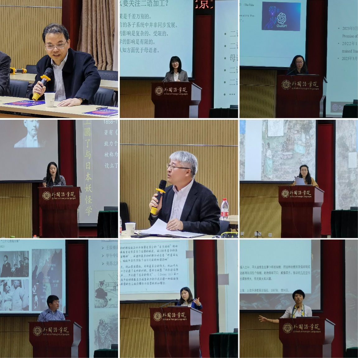论坛上午场由日语系孙建军长聘副教授主持,闵雪飞、冯硕、宋文志、阮晋逸、李睿、于施洋、刘雪瑽分别以《<天音>、象征与帝国想象——论佩索阿的神话诗学民族主义建构》《Quantifier scope ambiguity and grammatical morphemes in L3 acquisition of Korean》《本土问题与外来范式——韩国的国家安全研究》《莲冠鹤氅与草窟书斋——北宋佛教壁画对外道形象的构建》《“一本正经的胡说八道”——中德媒体关于ChatGPT报道的语言学话语分析》《“限制番薯入华”的另一面——16世纪西班牙的海外管理和知识生产》《科学与妖怪——学术史视角的井上圆了妖怪学》为题进行发言。