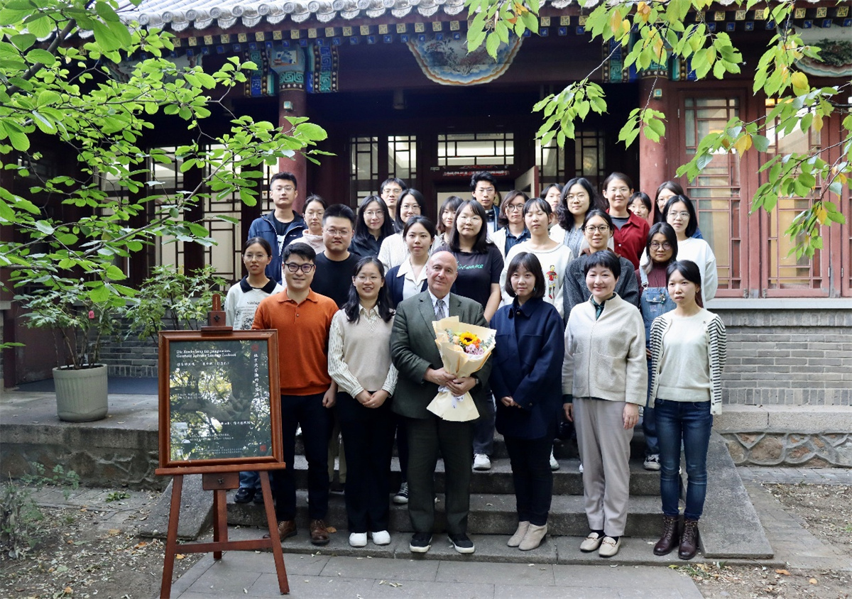 最后,北京大学德语系胡蔚老师、黄超然老师代表北大师生向傅汉德教授表示了衷心的感谢,盛赞傅汉德教授毫无保留地将自己的研究成果浓缩为四场学术讲座,带领参会者漫游近代早期到二十世纪的德语文学,为北大师生献上了一场学术盛宴。两位老师也向参与讲稿翻译、活动筹划和会务工作的北京大学德语系同学和提供大力支持的北京大学美学与美育研究中心师生表示了感谢。参与系列讲座的还有北京大学德语系刘敏老师、李睿老师和外教李克老师(Prof.Dr. Patrick Kühnel),以及北京大学哲学系欧阳霄老师、南星老师。