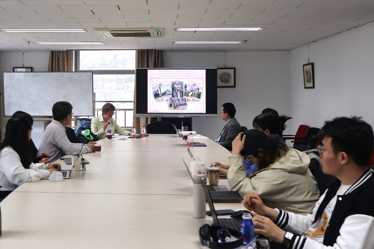 讲座最后部分,戈尔舍尼娜回顾了考夫曼建构土耳其斯坦文化遗产的动机,再次强调了考夫曼对于当地人的偏见,同时提请注意俄罗斯统治者同时作为文化遗产的保护者和破坏者的矛盾角色,希望与会者采取更加全面的视角看待19世纪中亚文化遗产的形成过程。与谈人侯艾君研究员、昝涛教授、庄宇副教授和施越助理教授总结点评讲座内容,并与主讲人进行了交流和探讨。