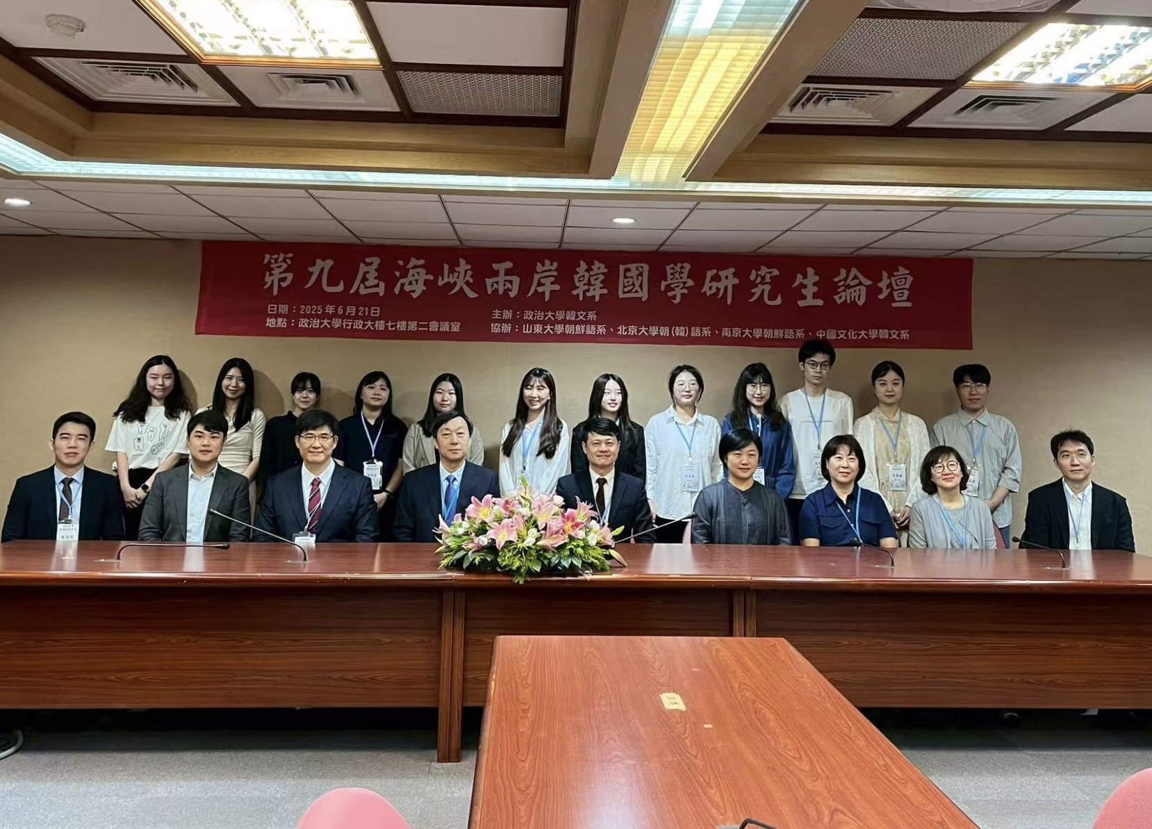 2025年6月21日,“第九届海峡两岸韩国学研究生论坛”在台湾政治大学行政大楼7楼第二会议室举行。来自北京大学、台湾政治大学、山东大学、南京大学、台湾中国文化大学的三十余名专家学者与研究生参会。“海峡两岸韩国学研究生论坛”由开云官方网址朝鲜(韩国)语言文化系、山东大学韩国学院、台湾政治大学外国语文学院韩国语文学系于2014年联合发起,2017年南京大学开云官方网址朝鲜语系加入。随着今年台湾中国文化大学国际暨外语学院韩国语文学系的加入,论坛已扩展为五校论坛。