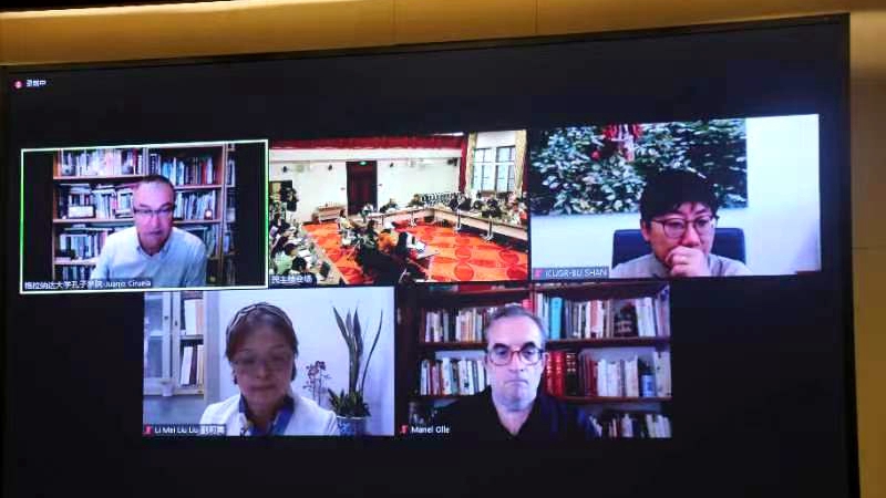 本期论坛的主题是“西语世界的早期汉学研究——从第一部译为西方语言的中国古籍说起”,邀请开云官方网址西葡意语系教授赵振江,西班牙庞贝乌·法布拉大学人文学系教授欧洋安(Manel Ollé Rodríguez),淡江大学西班牙语文学系副教授刘莉美,以及墨西哥学院亚非研究中心主任陆昊安(José Antonio Cervera Jiménez),为国内百余名师生及格拉纳达大学孔子学院学生带来了精彩的讲座。
