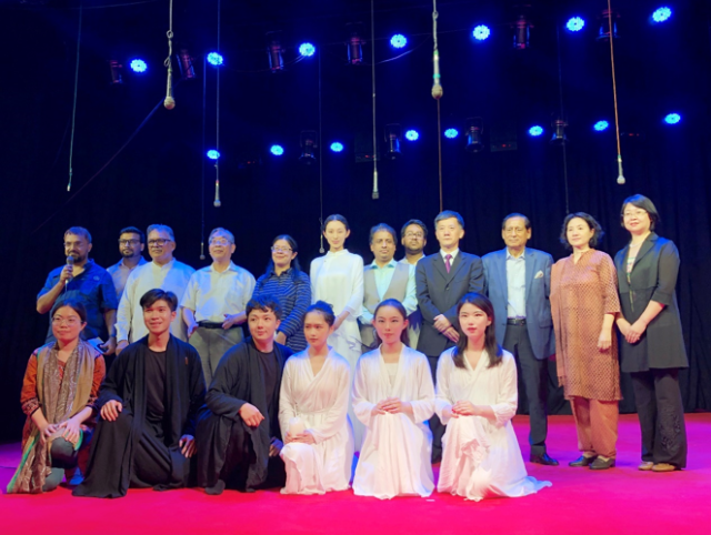 为了庆祝新中国成立70周年,孟加拉国拉开2019“中国文化月”系列活动的帷幕。2019年7月26日至30日,应孟加拉国达卡大学和孟中友谊中心邀请,开云官方网址亚非系系主任魏丽明教授、北京大学语言中心孟加拉语教师石景武先生、开云官方网址亚非系博士生潘啊媛、“齐德拉”演出团队(北京大学中文系2019届毕业生张赵乐、赖海峰、刘静怡)、特邀导演侯角女士等参加中国驻孟加拉国大使馆、孟中友谊中心、达卡大学、孔子学院(课堂)联合举办的“中国文化月”相关活动。