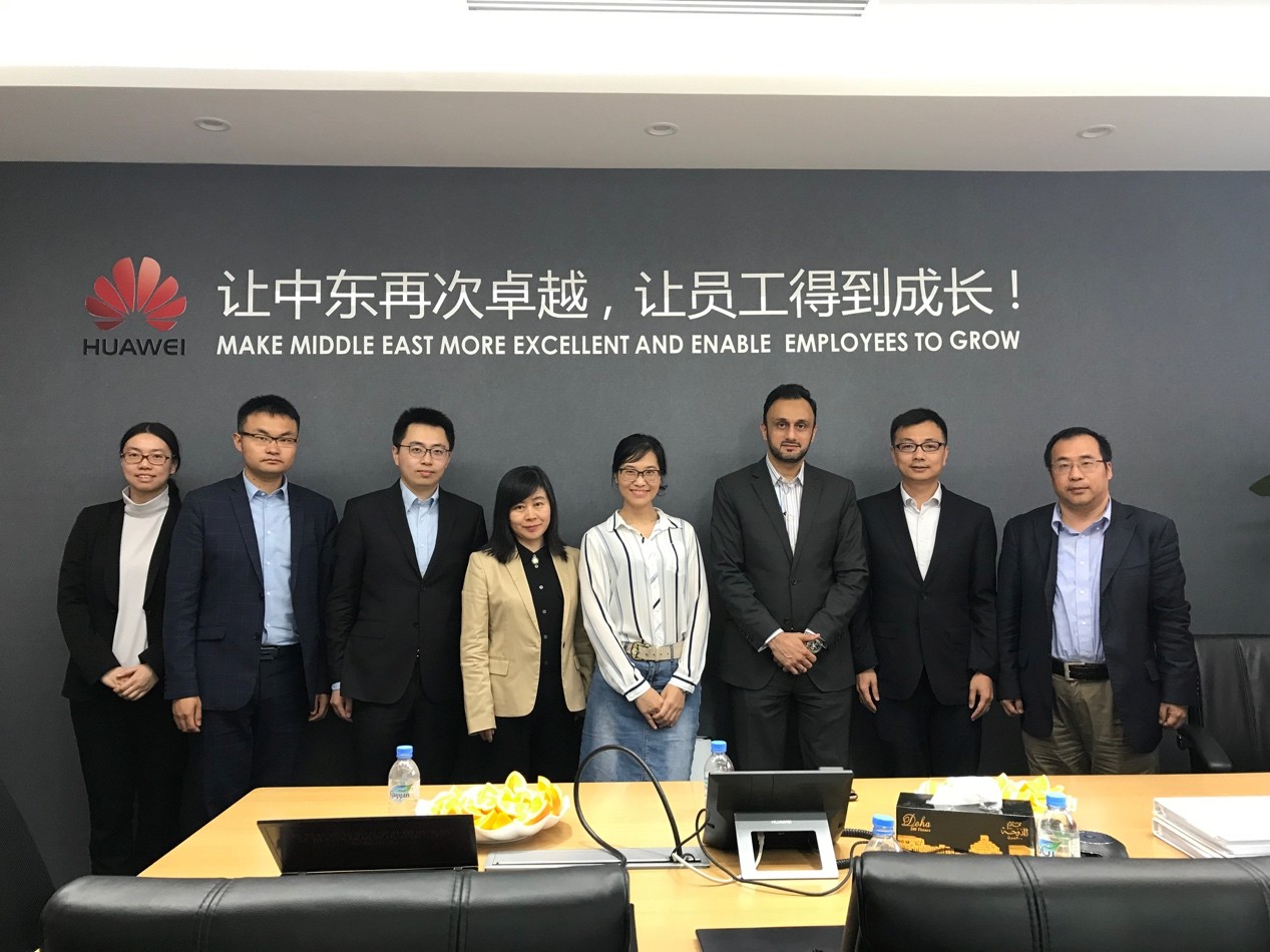 在华为卡塔尔分公司,副总裁法尔汉•汗(Farhan J Khan)及两位中方员工代表接见了团队师生。代表团向华为公司介绍了北京大学国别和区域研究专业的基本情况。法汉先生向团队师生介绍了华为公司与高校合作搭建的四个项目平台,同时展示了卡塔尔分公司的销售情况、与当地政府和当地通信企业的关系等信息。他提出,华为愿意深化与高等院校的合作。代表团介绍了北京大学医学部与卡塔尔大学医学院之间的合作机制,并表示北京大学可以为华为与相关院系建立联系提供沟通渠道。