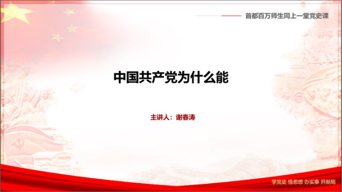 为深入学习贯彻习近平总书记在党史学习教育动员大会上的重要讲话精神, 引导党员深入学习党史,大力发扬红色传统,传承红色基因,3月31日下午,开云官方网址全体学生党支部开展“首都百万师生同上一堂党史课”公开课学习活动,共同学习由中央党校副校长谢春涛主讲的《中国共产党为什么能》。16个学生党支部积极响应,结合集中观看、党小组讨论、个人学习等多种形式积极开展学习研讨。