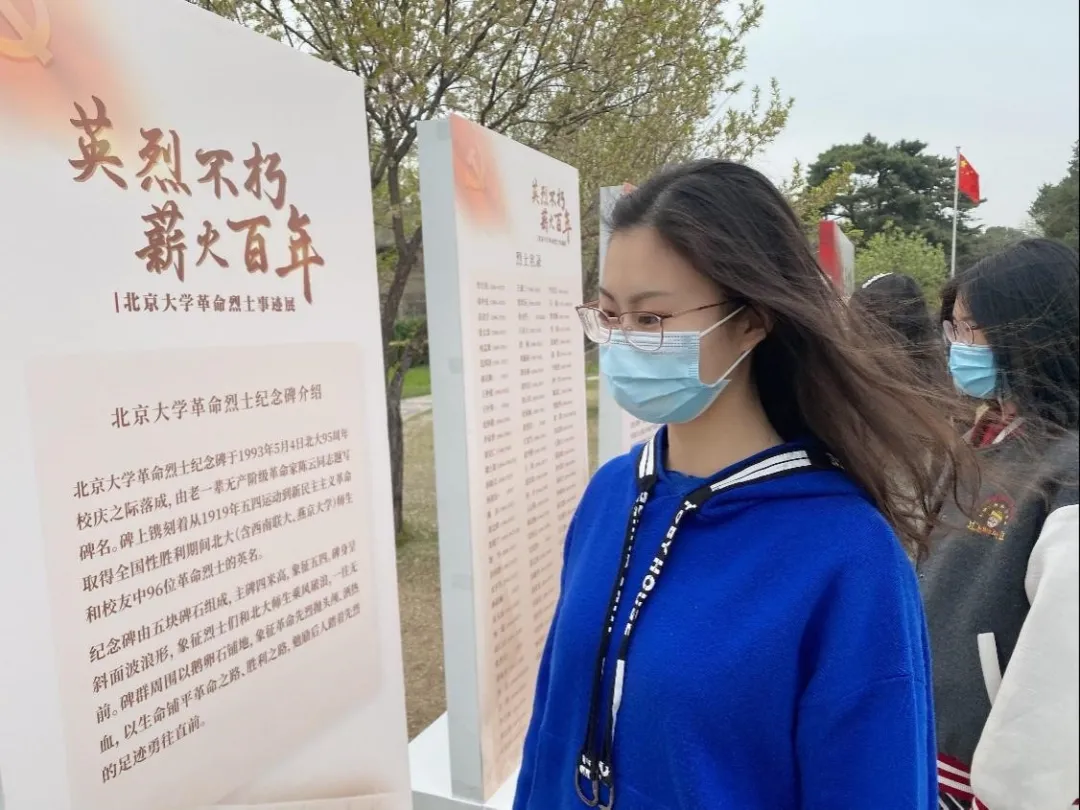 西班牙语2020级本科团支部的成员在参观中展开了集体的讨论。夏彬同学认为,今天的展览让她对北大英烈的事迹有了更深入的认识,深受震撼。邓晨钰同学看过展板后表示,这些烈士们也曾是鲜活的生命,当他们的肉体生命消殒之时,他们的精神生命——为祖国、为共产党、为中华民族奉献一切的精神——应当是不朽的,始终值得我们铭记。