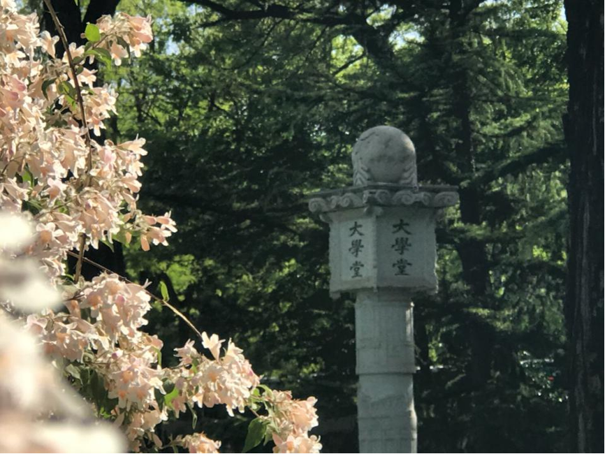 从树影花间穿过,许多同学第一次在每日穿梭的校园中见到了清晰镌刻着“大学堂”字样的立柱、东方朔的雕像。草木青翠、花影初浓,在由春转夏的时节里,同学们共同聆听马克思主义传播与中国共产党发展初期的蓬勃历史,走近那段特殊的岁月。
