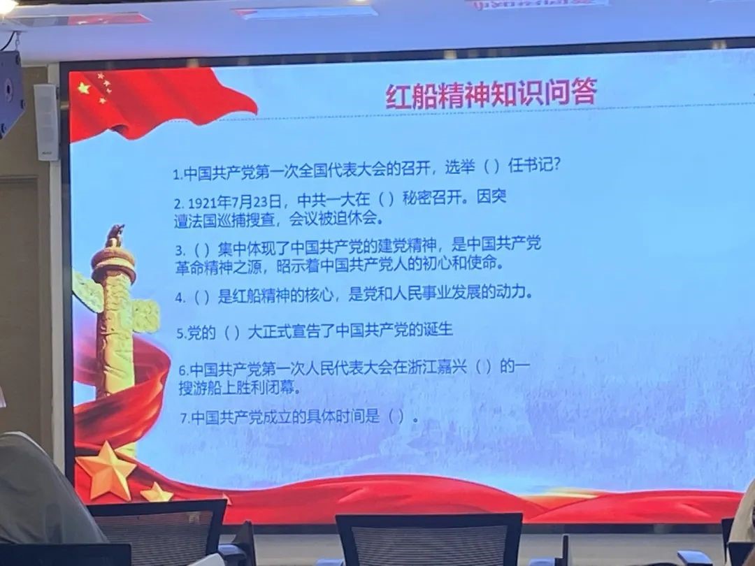 我们首先进行了“红船精神知识竞赛”,其中考察了与中国共产党的成立、中共一大的召开等相关的知识。同学们在老师的带领下纷纷踊跃参与答题,学习热情十分高涨。