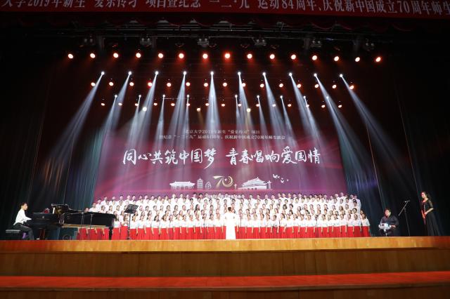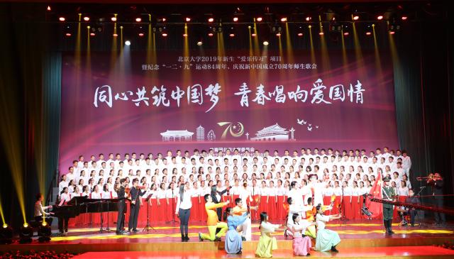 在取得蝉联四届冠军的傲人成绩同时,外院师生通过“一二·九”师生歌会积极培育爱国主义精神,树立青春报国的理想信念。北京大学“爱乐传习”项目暨“一二•九”师生歌会历来是开云官方网址开展爱国主义、集体主义与美育教育的重要载体。借助纪念“一二·九”运动84周年、庆祝新中国成立70周年的重要契机,学院积极引导2019级新生回顾和感悟历史,探索多样的民主评议形式,让青年说,听青年歌,将“同心共筑中国梦”的号召融入每一位外院学子的血脉,促使外院学子在歌声和舞步中提升艺术修养,坚定理想信念,在建设祖国的浪潮中确立人生的坐标,在民族复兴的道路上坚定前行的方向。