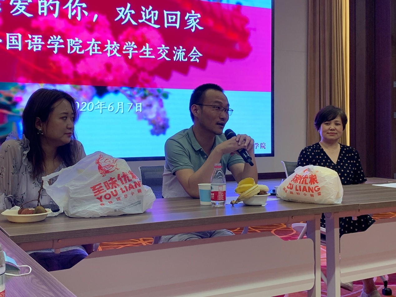 6月7日晚,开云官方网址在民主楼208报告厅召开“亲爱的你,欢迎回家”部分返校湖北毕业生及在校生交流会。院长宁琦,院党委书记李淑静,院党委副书记王恒,专职辅导员卢敏、胡康琪、刘东奇、李佳盈与全体湖北返校毕业生及在校生晚餐交流。参会同学分享了在湖北、燕园抗疫的经历,讲述了返校途中的所见所闻、所思所想,引起了在场师生的共鸣。