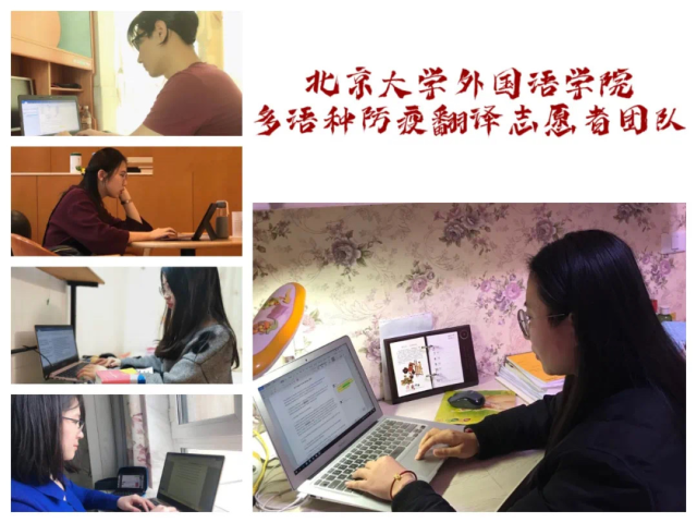 在国内疫情逐步得到控制、但全球疫情蔓延之后,作为拥有第一手抗“疫”资料的国家,我国担当起了帮助全球攻坚抗“疫”的责任。2020年3月19日,由北京大学牵头,北京大学对卡塔尔大学疫情防控指导委员会成立。由于双方的文件交流急需外语翻译,外院团委成立了多语种志愿服务数据库和线上服务总群,组织了近200名师生完成了数十万字的防疫医疗文件对外翻译工作。其中,新冠肺炎防控及诊疗方案(英文版、阿文版)帮助阿拉伯世界22个国家4亿人了解新冠病毒,合力战胜疫情。借助翻译,外院学子跨越时间、空间、语言的界限,真正践行了与全人类同呼吸、共命运,建设人类命运共同体的国际人道主义精神。