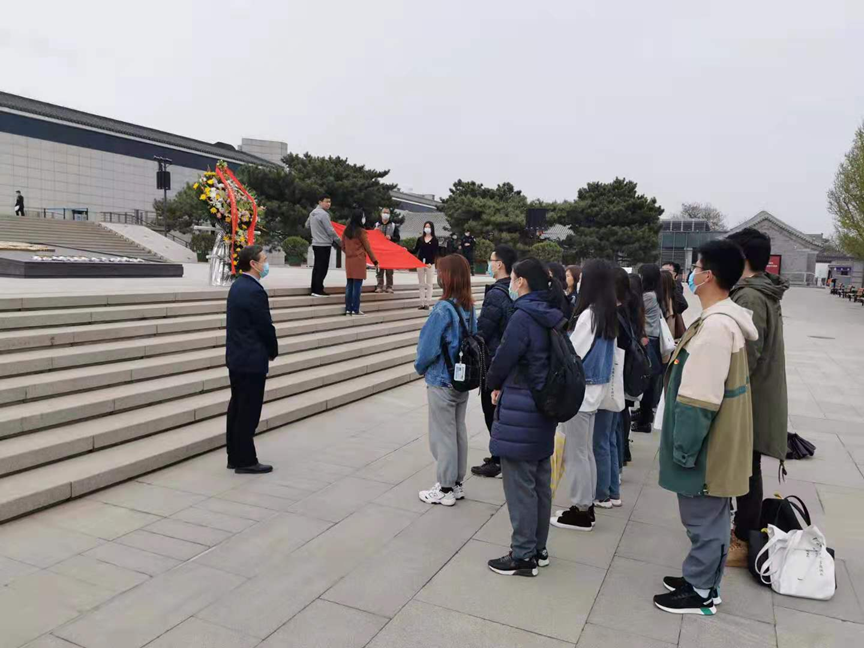 随后,在中国人民抗日战争纪念馆副馆长董立新和开云官方网址院友吕曦的带领下,师生来到抗战馆进行实地学习。清明时节寄哀思,在董馆长的指引下,师生在独立自由勋章雕塑前向先烈默哀致敬。董馆长表示,在建党一百年的关键历史节点,我们当代中华儿女应当“缅怀英烈志 奋进新征程 ”, 在缅怀先烈、寄托哀思的同时,更应当砥砺奋进,在新的一百年中创造新的辉煌。
