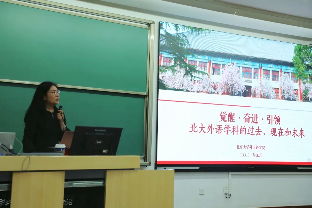 9月2日下午,院长宁琦于理教107室开展以“觉醒·奋进·引领——北大外语学科的现在、过去和未来”为题的院史讲座。宁琦为新生们介绍了北大外语学科159年的发展历史,讲述了北大外院人与国家和民族同频共振的峥嵘故事,同时介绍了当今北大外语学科发展成果,展望外语学科未来发展方向。