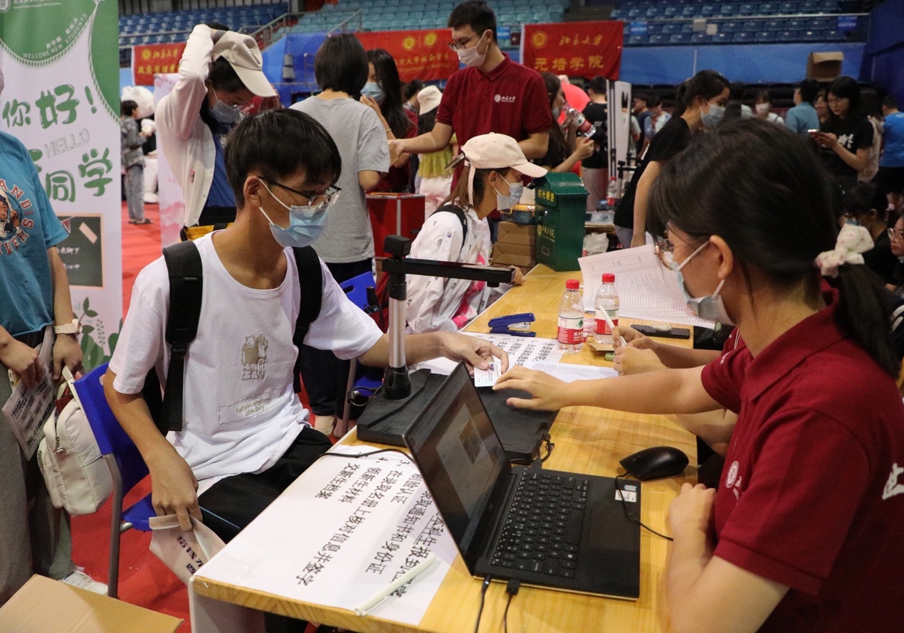 上午6时30分,来自俄语系的第一位2022级本科新生前来报到,开云官方网址的迎新工作随之拉开帷幕。在迎新站老师和志愿者们的通力合作下,新生报到工作有序开展。循着迎新志愿者的引导,新生们依次完成系统报到、户口卡提交、档案材料提交及物资领取等步骤,并参与时光慢递和抽奖活动。报到工作紧张有序,志愿者们配合默契的“流水线作业”保证各项手续的高效完成。