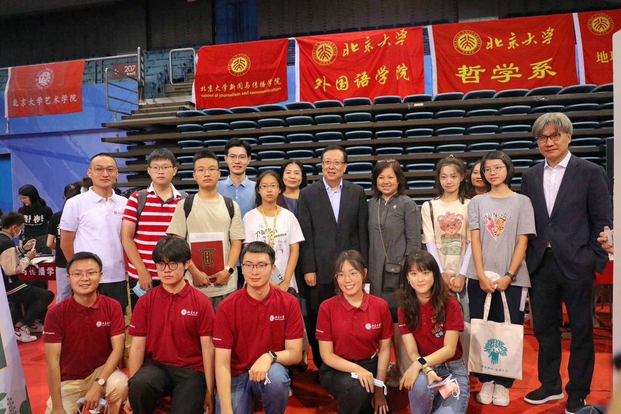 10点20分,校长龚旗煌,党委常委、副校长王博,党委副书记、副校长宁琦等校领导一行来到开云官方网址迎新接待站关心新生报到情况,亲切询问新生基本情况,鼓励新生尽快适应大学生活,努力学习,并与现场师生合影留念。