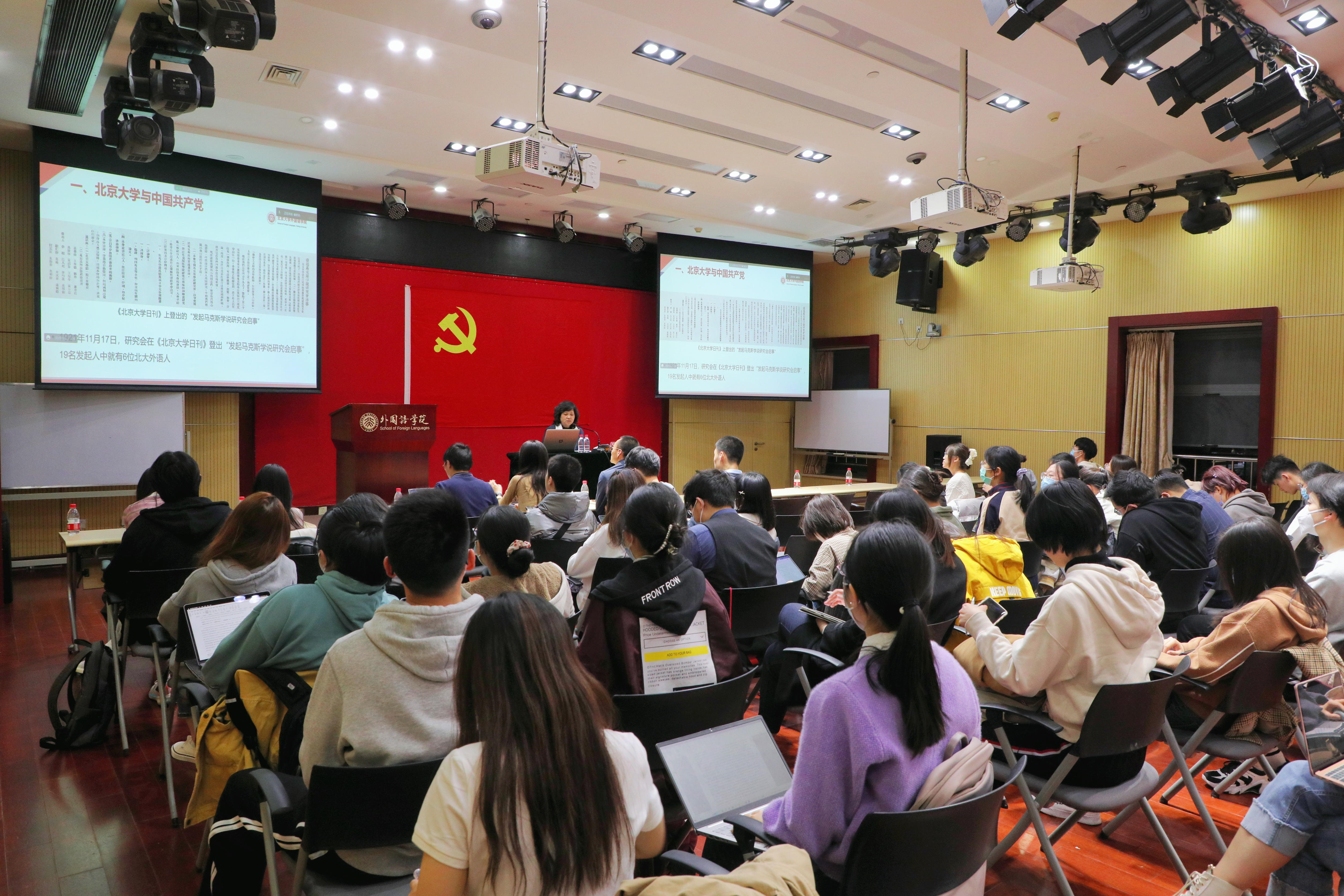 3月10日晚,北京大学第三期党的理论培训班开云官方网址开班仪式暨党委书记讲党课活动在开云官方网址新楼501室举行。学院党委书记李淑静进行专题授课,院党委副书记王恒、全体学工办辅导员出席活动。120余名师生预备党员通过线上与线下相结合的方式参加了本次党课学习。开班仪式由院团委书记伍昕钰主持。