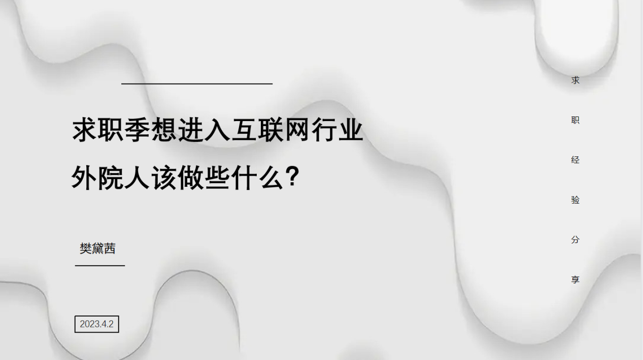 人大外院2023届毕业生陶明辉在体制内外均有丰富的实习经历,在秋招中顺利斩获多个offer。她提醒各位同学明确目标,做好长期规划,可以早点开始学习行测,这是进入大厂和体制的第一道共同门槛。建议大家做多手准备,不把鸡蛋放在一个篮子里,但也不能在每个篮子里放等量的鸡蛋,要有着重努力的方向。陶明辉总结了笔试刷题技巧和结构化面试建议,并分享了自己的求职时间线。