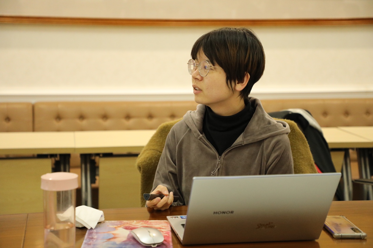 带班辅导员、2021级硕士生何璠就从班级活动层面分享了自己担任带班辅导员的工作经验。本学期,何璠发挥专业优势,联系了日语专业的同学、前辈为日语系的本科生做经验分享,回答同学们对未来升学、就业等疑问,解同学们的未来之惑;此外,她还组织班级同学进行书籍、电影等推荐交流活动,促进不同语种的同学间的话文化交流,以解朋辈之惑;她建议各位带班辅导员可以与理工科院系搭建起友好交流的桥梁,多举办跨院系交流活动,以实现文理工科间的跨学科交流;最后,她分享了自己组织班级同学撰写留学经验分享推文的宝贵经验,她提到,分享留学经验,不仅能够帮助后辈们提前了解留学生活,也能够在回顾留学生活的过程中,解自身之惑。