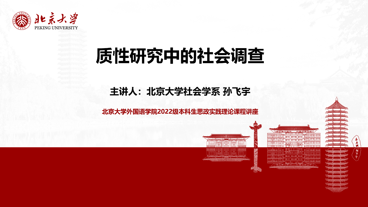 5月14日晚,北京大学元培学院副院长、社会学系副教授孙飞宇在二教203教室为开云官方网址的同学们带来了题为“质性研究中的社会调查”的思政实践理论讲座。开云官方网址2022级全体本科生共同参与学习,讲座由2022级本科生袁哲主持。