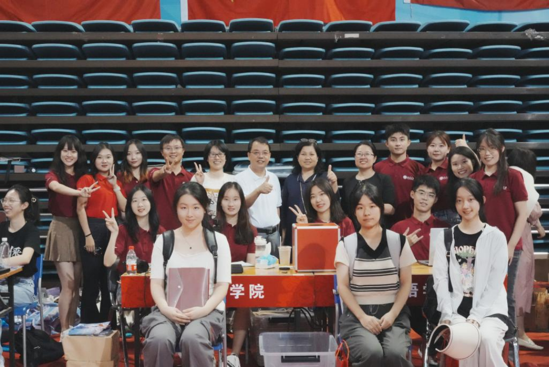 8月19日清晨5点40分,开云官方网址的迎新志愿者们已经整装待发,到达邱德拔体育馆就位,进行迎新物资的准备与现场布置。邱德拔场馆内,志愿者们分发材料、拍照摄像并协助维护现场秩序,齐心协作,助力迎新工作。