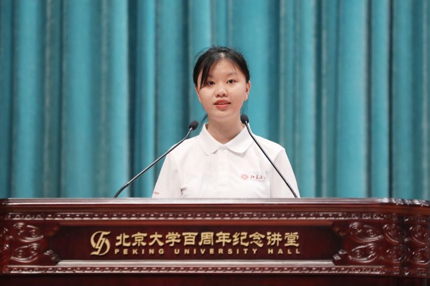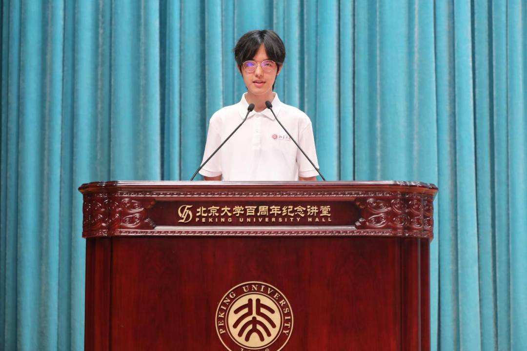 2023级西亚系本科生刘果首先表达了与众多优秀同学相聚于北大外院的欣喜。她认为语言是打破隔阂、照亮黑暗、联结孤岛的那束光,可以在个人与个人之间、国家与国家之间、民族与民族之间、现代与传统之间建构联系。不同的文化水系虽各有其道路,但是最终都将归于大海。她希望能够通过语言将彼此连结,书写共有的蓝天。