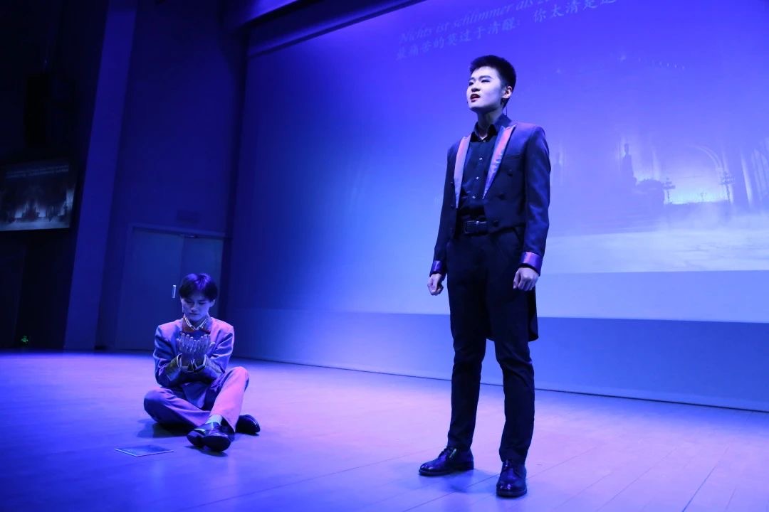 刘翔宇、张雨阳为我们带来音乐剧选段《Die Schatten werden langer(阴霾渐袭)》。看黑夜就要来临,歌声划破天际寒冷如冰;看黑夜就要来临,漫天灿烂繁星忽暗忽明。黑夜将至、人影渐长,我们必须要经受住这场灾难,力挽时代狂澜!