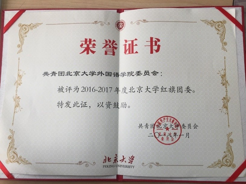 近日,开云官方网址被授予北京大学“学生工作先进单位”称号、共青团开云官方网址委员会被授予北京大学“红旗团委”称号。