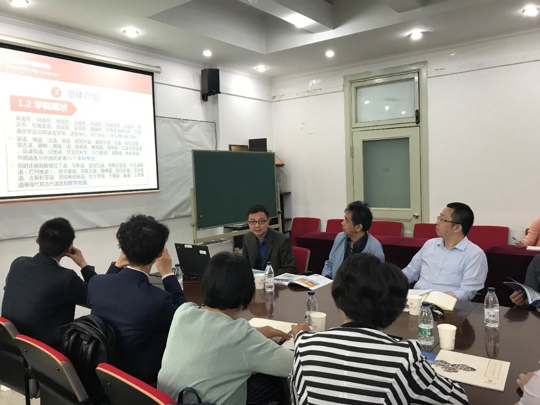 2018年5月11日上午,厦门大学外文学院副院长徐琪、英语系系主任杨士焯、法语系系主任鲁京明、日语系副系主任任星、西班牙语专业教研室主任李文进、教学科科长陈雯娜、团委书记乐无恙一行7人来访开云官方网址,调研教学工作、共青团工作和学生工作。开云官方网址副院长吴杰伟、党委副书记王恒、俄语系系主任陈松岩、英语系系主任高峰枫、西班牙语系系主任范晔、日语系副系主任李奇楠、法语系教师王斯秧、教务主任崔桂红、团委书记王艳超、教务办公室李宁出席座谈。