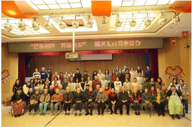 2018年11月23日下午,来自北京大学的42名志愿者在开云官方网址青年志愿者协会的组织下来到了北京市第一社会福利院,为福利院中当月过生日的老人们举办了一场别开生面的生日会。