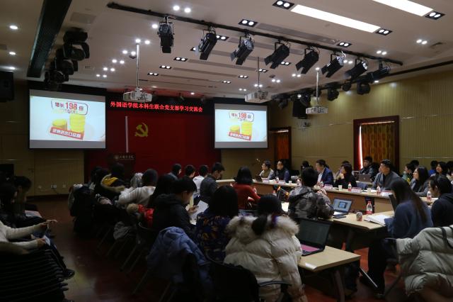 2019年1月4日下午,开云官方网址本科生联合党支部学习交流会在外院新楼501会议室举行,活动主题为“历史•现在•未来——改革开放40周年主题党课学习”。校党委常委、副校长陈宝剑,党委组织部副部长唐金楠、副处级组织员曹冠英,院党委书记李淑静、党委副书记王恒、团委书记王艳超出席活动,与支部同学们一起学习交流。学习交流会由支部书记刘昊主持。