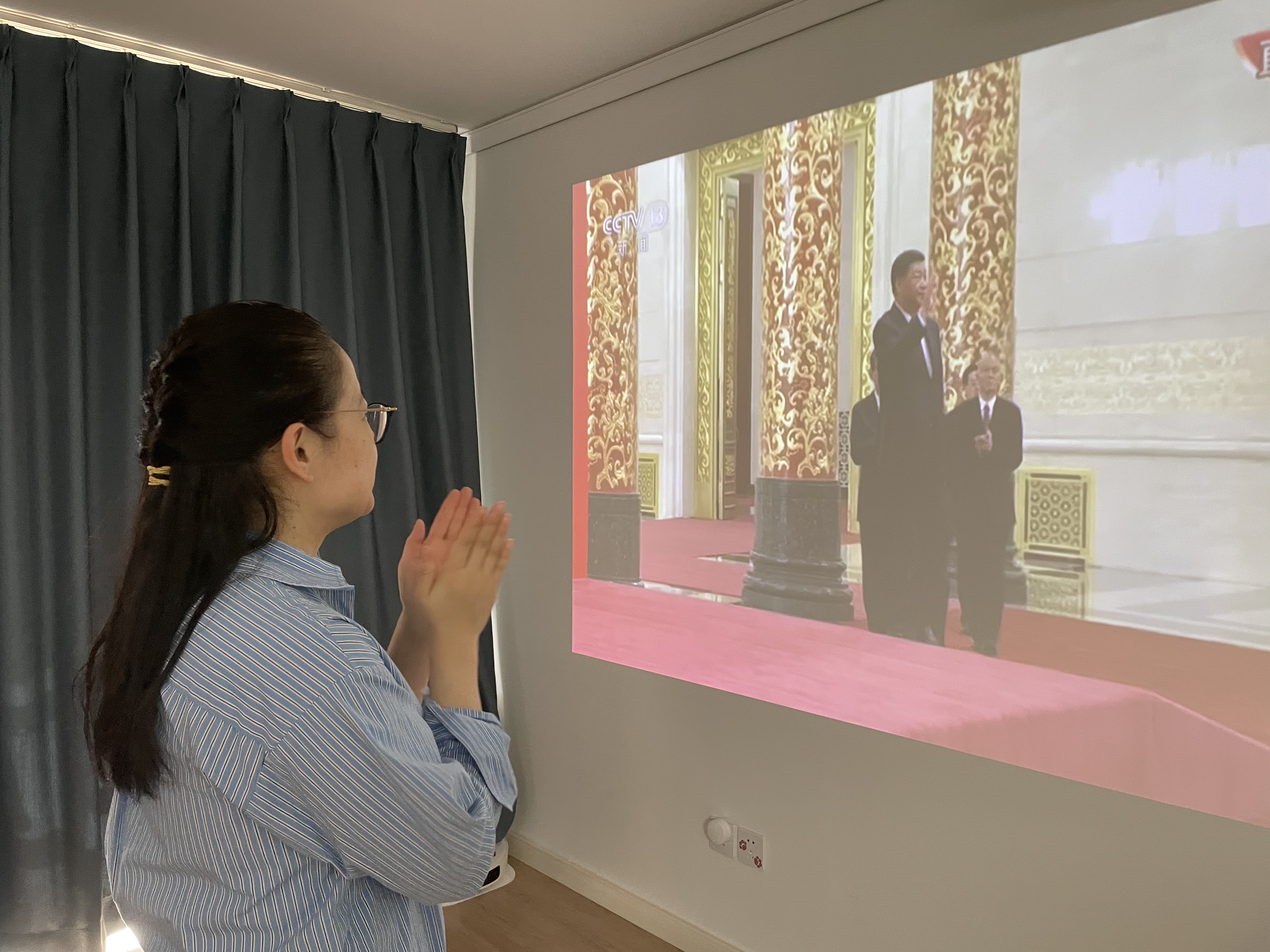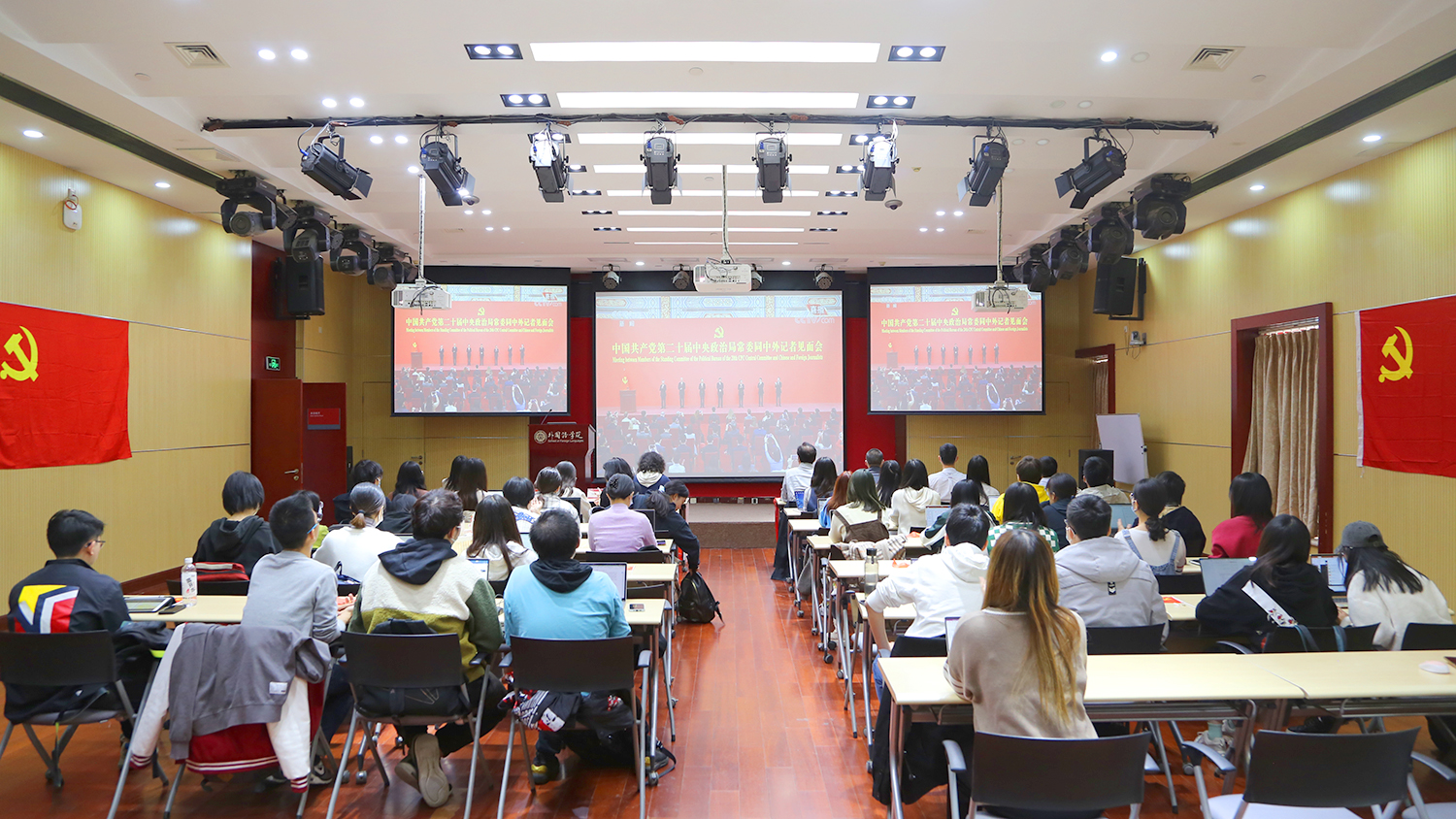 开云官方网址组织师生集体观看第二十届中央政治局常委同中外记者见面会直播