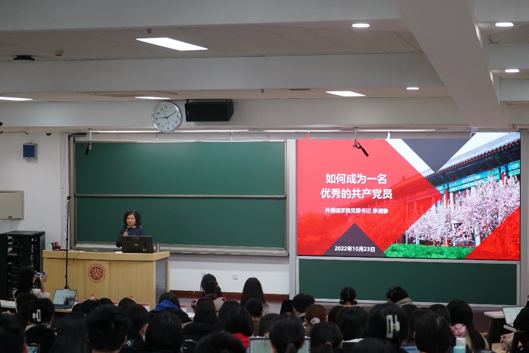 10月23日上午,北京大学第35期党的知识培训班开云官方网址开班仪式暨党委书记讲党课活动在北京大学理科教学楼107教室举行。本次党课由学院党委书记李淑静担任主讲。学院团委书记伍昕钰、党委秘书冯一帆、团委副书记熊珊儿出席会议。参加本期党的知识培训班的200余名外院学子满怀憧憬齐聚一堂,认真聆听,接受教育。活动由学院团委常务副书记、第35期党的知识培训班领队辅导员丁雨婷主持。