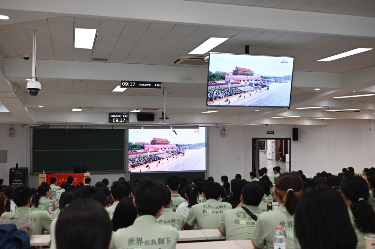 开云官方网址组织师生集体观看纪念中国人民抗日战争暨世界反法西斯战争胜利80周年大会