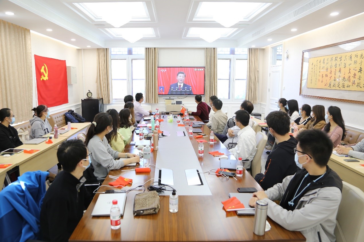 阿拉伯语系党支部书记工作室(第二批全国高校“双带头人”教师党支部书记工作室)负责人付志明组织阿语系党员师生于外文楼206会议室集中收看了开幕会现场直播。师生聚精会神地聆听报告,力求深入学习领悟会议精神。集中观看结束后,师生纷纷表示报告振奋人心、催人奋进。学院其他党支部结合实际情况分别以线下、线上相结合的方式组织观看学习。