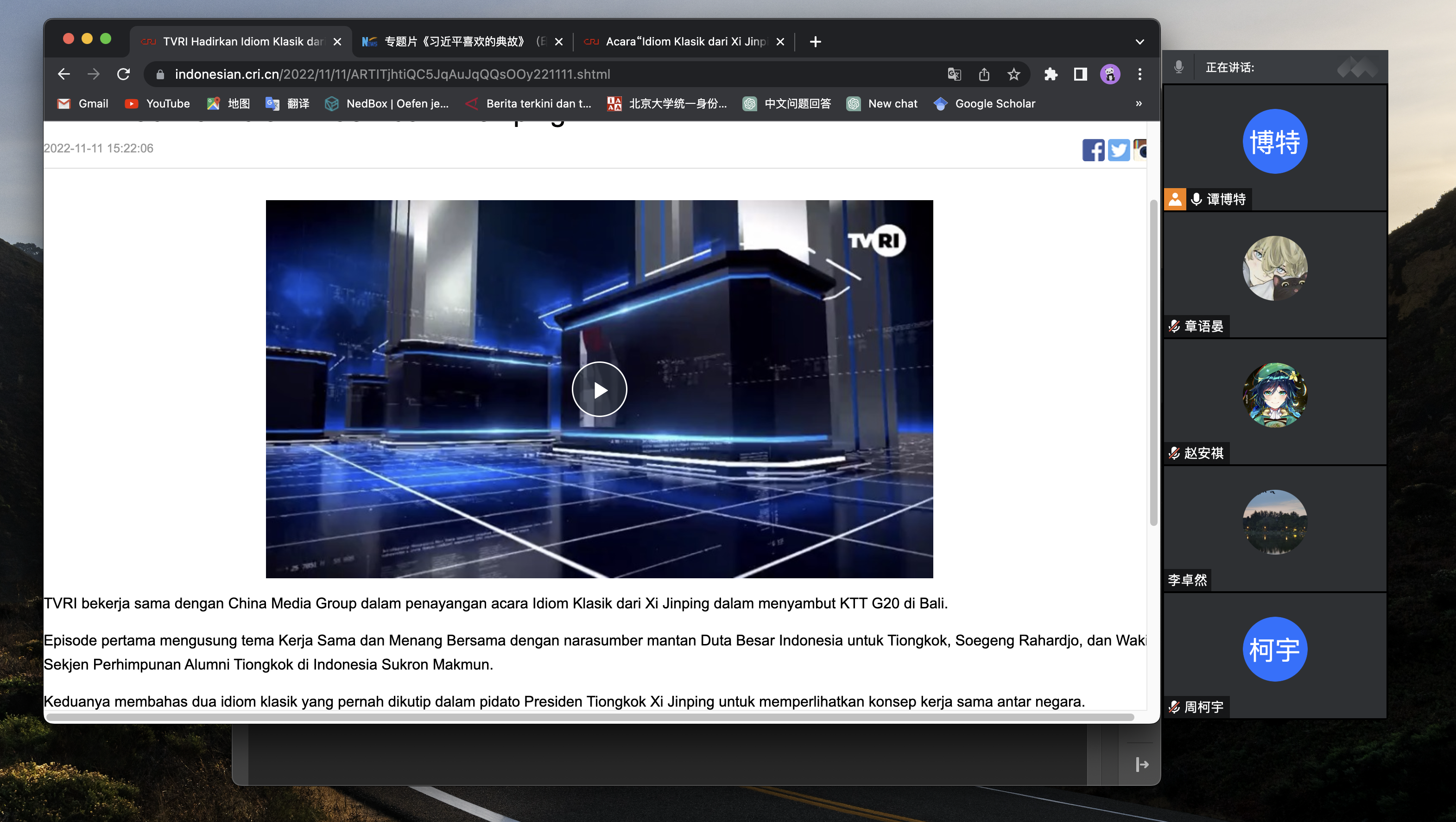 印尼语班同学集体观看视频《习近平喜欢的典故》