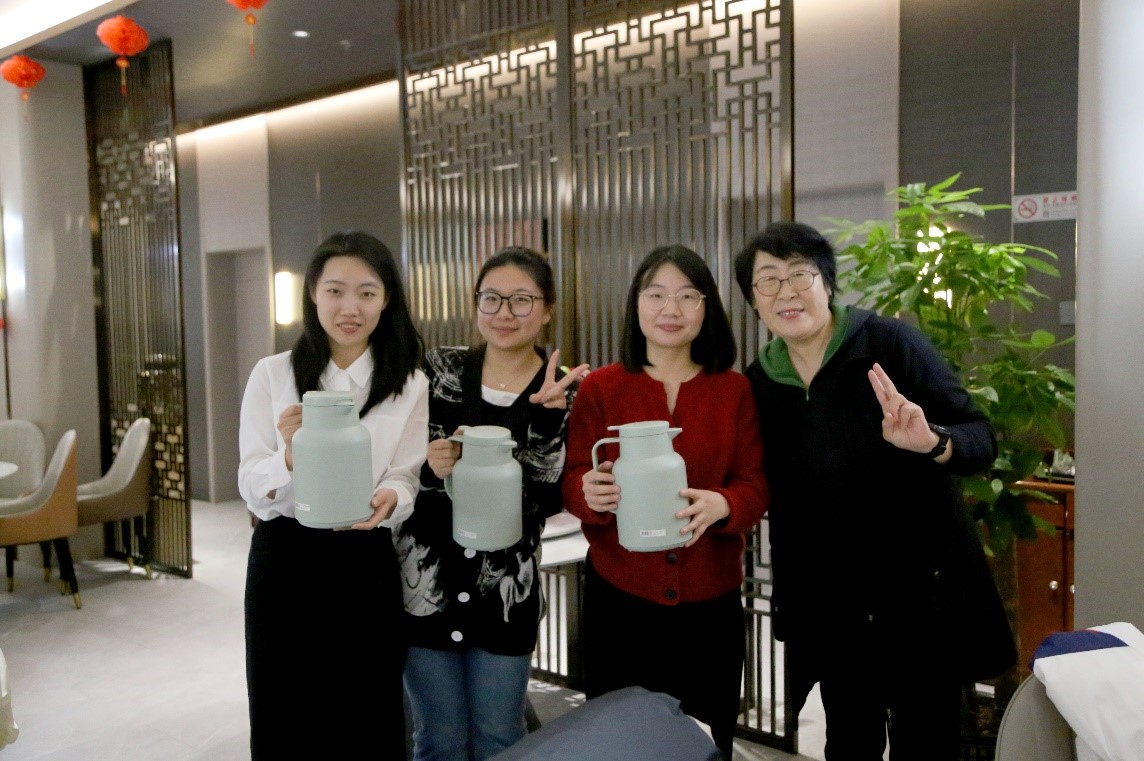 本学期,教务办公室的邵晓梅老师即将退休,迎来人生的新阶段。党委副书记冯美娜老师、2023届选留生李欣雨、图书分馆馆员徐月老师加入了外院行政大家庭,党委副书记张冬梅老师为邵晓梅老师献上鲜花和感谢牌,祝福邵老师退休生活幸福快乐。学院为新同事准备了迎新礼物,欢迎三位老师的加入。